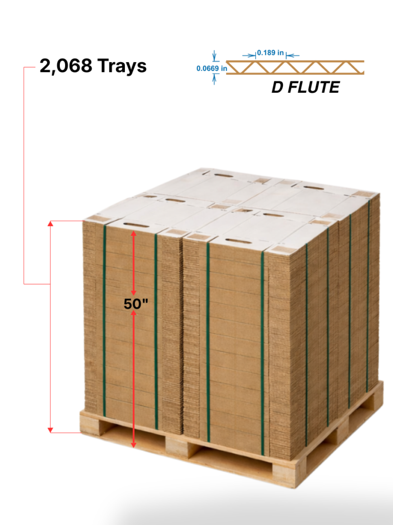 D-Flute’s reduced caliper allows more trays per pallet without compromising tray integrity.
